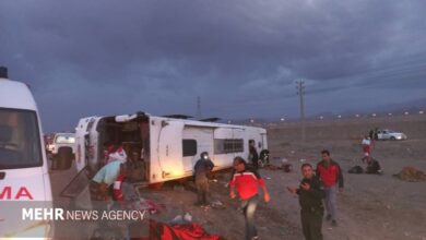 واژگونی اتوبوس بر اثر خواب آلودگی راننده در زنجان