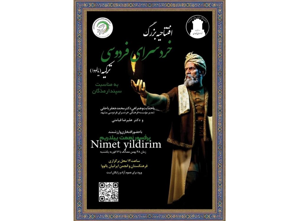 ارتباط فردا: دهمین خردسرای فردوسی به مناسبت سپندارمذگان در ترکیه (یالووا) از ساعت ۱۲ (به وقت ترکیه)، ساعت ۱۲:۳۰ (به وقت ایران) روز یکشنبه ۲۸ بهمن با سخنرانی نعمت ییلدریم، محمدجعفر یاحقی و علیرضا قیامتی در فرهنگستان و انجمن ایرانیان یالووا افتتاح خواهد شد.