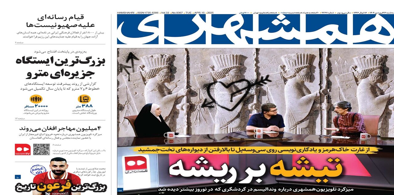 - تیشه بر ریشه؛ میزگرد تلویزیونهمشهری درباره وندالیسم در گردشگری که در نوروز بیشتر دیده شد