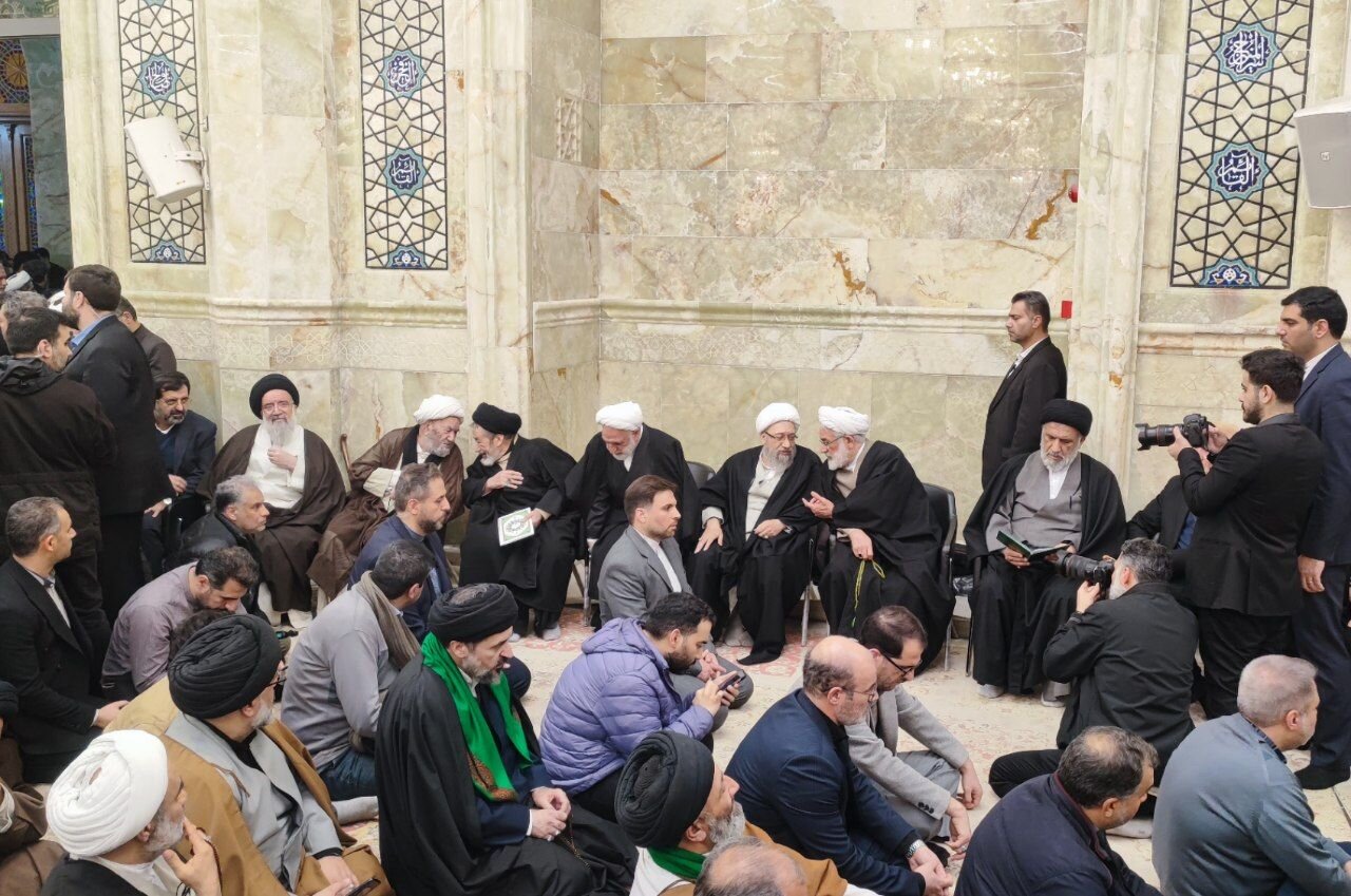 آیت الله جعفر سبحانی و آیت الله حسین نوری همدانی از مراجع عظام تقلید، حجت الاسلام والمسلمین اژه ای رئیس قوه قضائیه، آیت الله آملی لاریجانی رئیس مجمع تشخیص مصلحت نظام، آیت الله خاتمی امام جمعه موقت تهران، حجت الاسلام والمسلمین منتظری رئیس دیوان عالی کشور، آیت الله سید هاشمی حسینی بوشهری رئیس جامعه مدرسین حوزه علمیه قم، آیت الله فاضل لنکرانی رئیس مرکز فقهی ائمه اطهار علیهم السلام، حجت الاسلام رستمی رئیس نمایندگی ولی فقیه در دانشگاهها، سراج و صلواتی از قضات برجسته کشور در این مراسم یادبود حضور یافتند.
