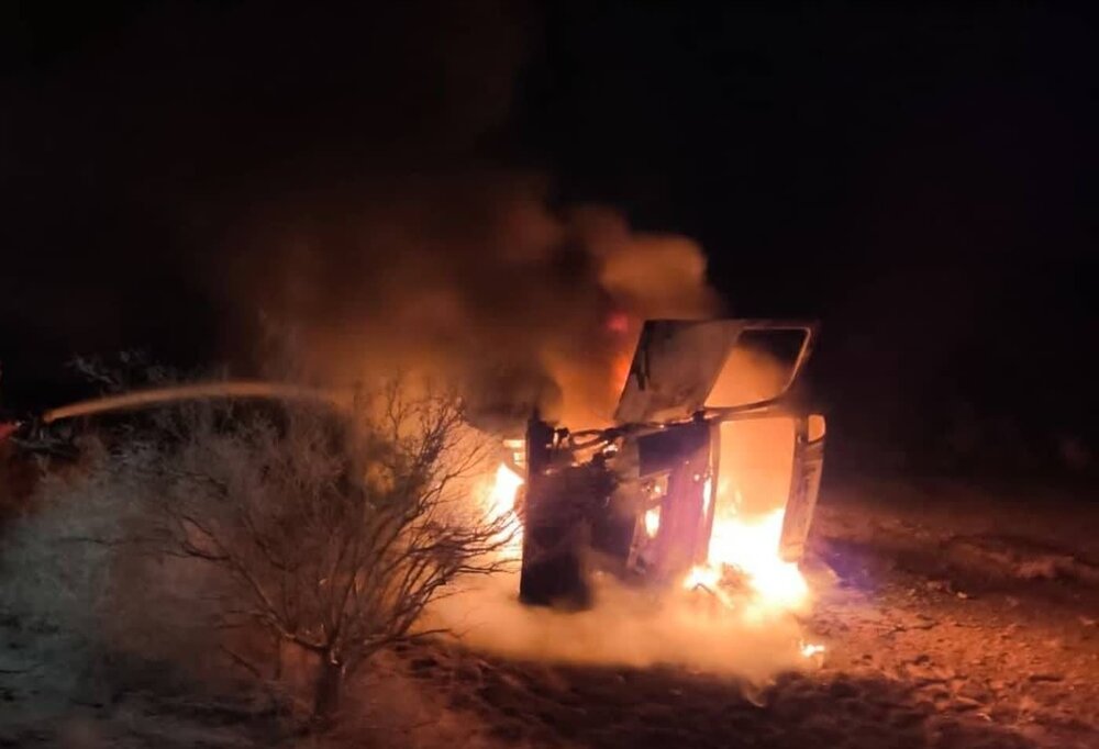 تریلر حامل گُندله در جاده زرند- سیریز در آتش سوخت