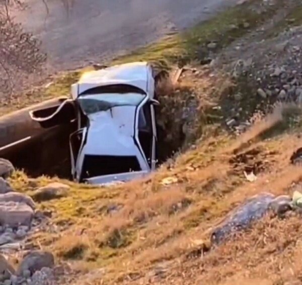 تصاویر نجات معجزهآسای راننده سواری بعد از سقوط به دره