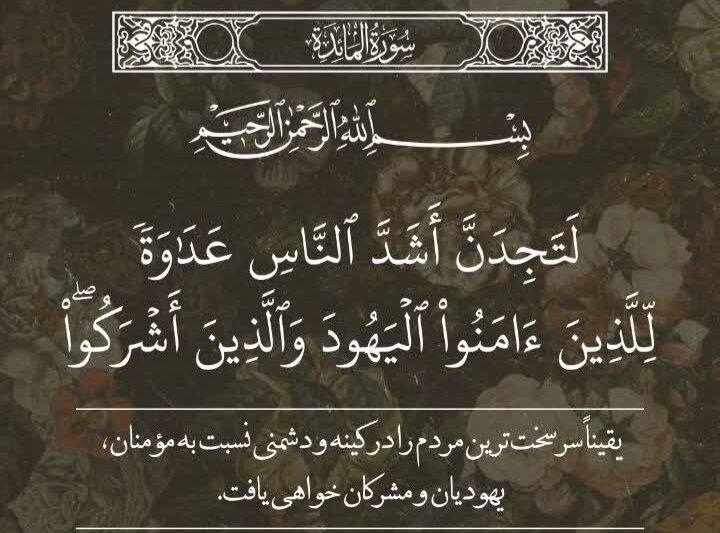 محمدی در ادامه به آیه‌ای از قرآن اشاره کرده و گفت: یهودیان هیچگاه از مسلمانان راضی نمی‌شوند مگر اینکه آنها آئین خود را رها کرده و به دین یهود پیوسته و از آن تبعیت کنند.