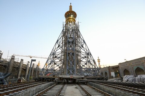 جابه جایی گلدسته صحن جمهوری اسلامی حرم مطهر رضوی + ویدئو