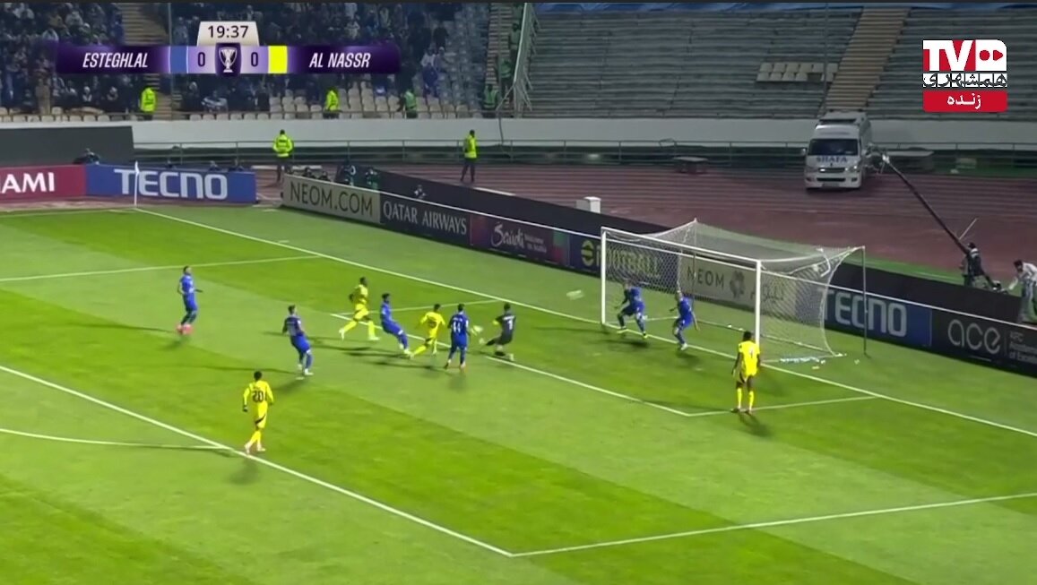 حمله خطرناک النصر روی دروازه استقلال که روزبه چشمی دروازه آبی ها را نجات داد + فیلم