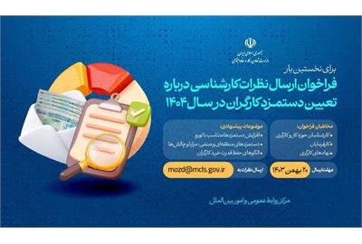 در متن این فراخوان از همه کارشناسان حوزه کار و کارگری، کارفرمایان، و نهادهای کارگری دعوت شده تا نظرات کارشناسی خودشان را تا تاریخ بیستم بهمن ماه، بهآدرس اینترنتی وزارت تعاون، کار و رفاه اجتماعی (mozd@mcls.gov.ir) ارسال کنند تا در جلسات شورایعالی کار که از چندی پیش آغاز شده است مورد بحث قرار گیرد.
