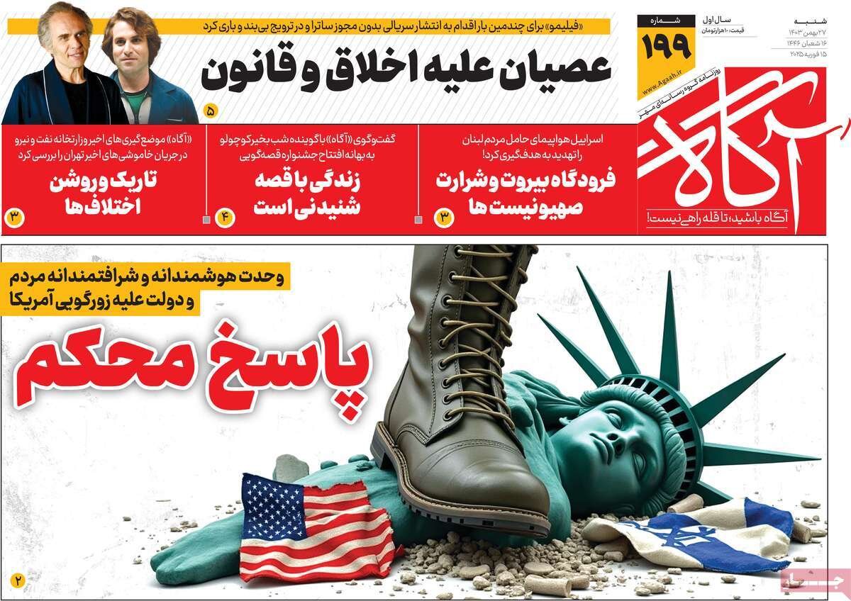 روزنامه‌های صبح امروز از وحدت هوشمندانه مردم در برابر زورگویی آمریکا نوشتند.