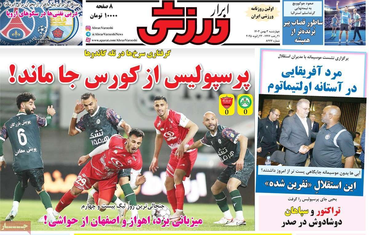 اخبار و حواشی بازی اخیر پرسپولیس، موضوع مورد بحث بسیاری از روزنامه‌های ورزشی چهارشنبه ۳ بهمن قرار گرفته است.