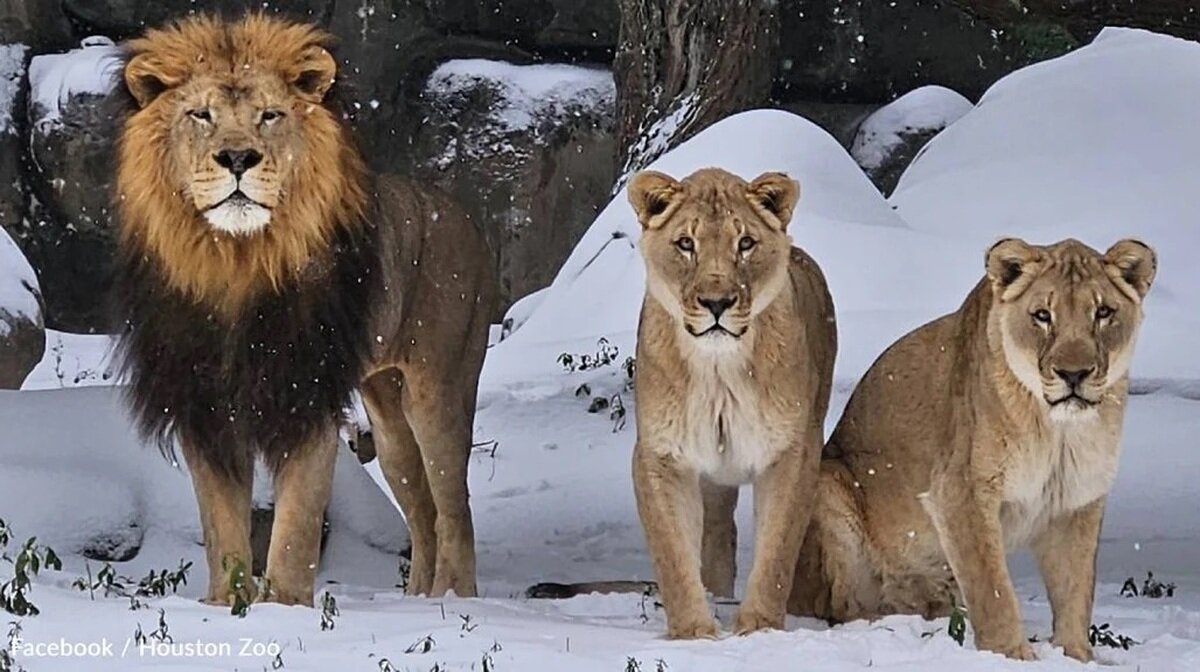 حیوانات باغ‌وحش هیوستون با دیدن اولین برف در زندگی خود به شادی و بازیگوشی پرداختند.