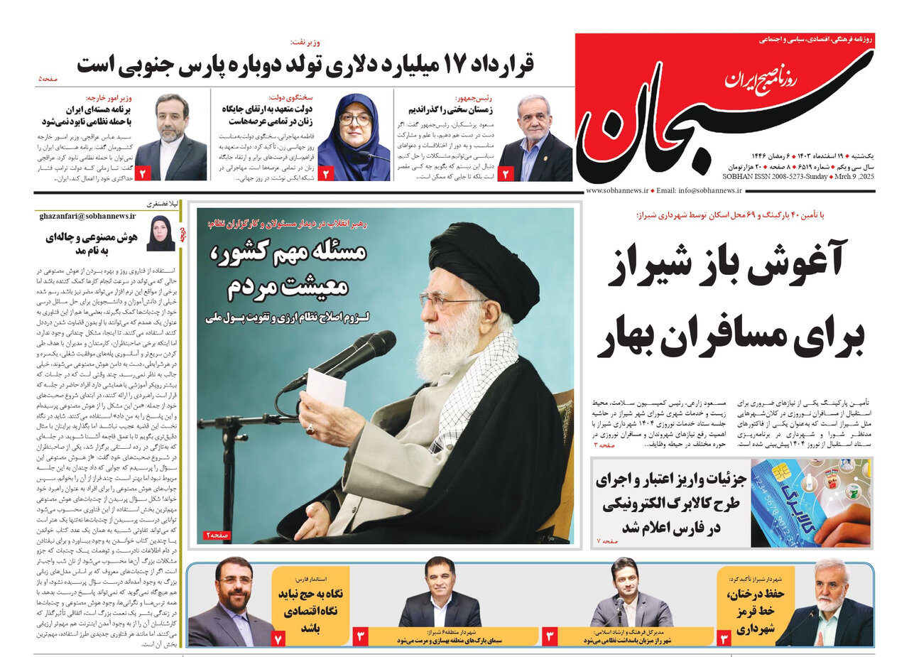 [ad_1] صفحه نخست روزنامه های استان فارس یکشنبه ۱۹ اسفند ماه [ad_2] منبع:مهر