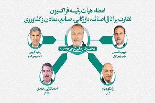 با رای اعضای فراکسیون، حبیب قاسمی، نماینده مردم شهرضا و دهاقان بهعنوان نایب رئیس اول و رحیم کریمی، نماینده مردم سمیرم بهعنوان نایب رئیس دوم هیئت رئیسه فراکسیون نظارت بر اتاق اصناف، بازرگانی، صنایع، معادن و کشاورزی انتخاب شدند.