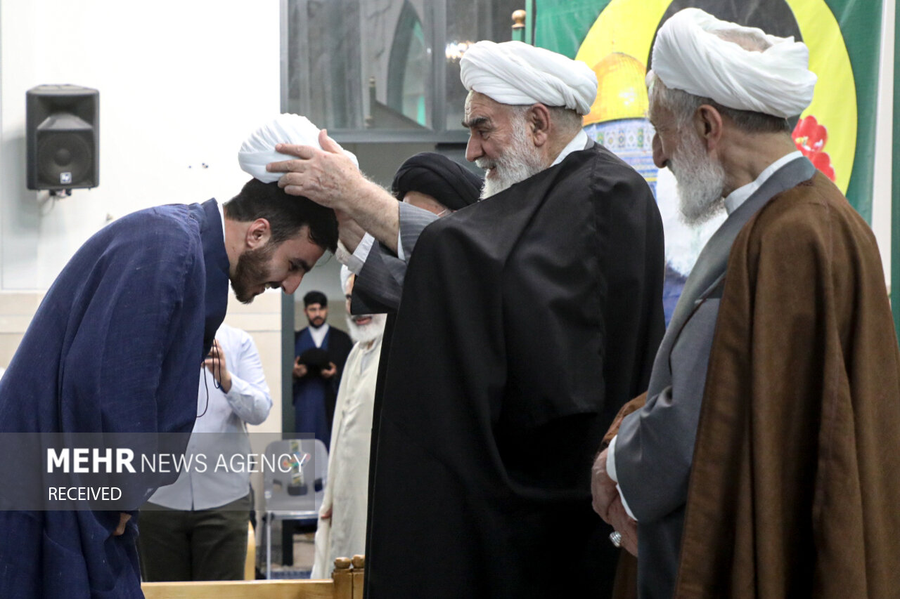 مراسم عمامه گذاری در مسجد پیامبر اعظم (ص) شهرک محلاتی تهران