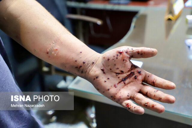علیشاهی گفت: در صورتی که چشم در اثر اصابت ترکشهای ناشی از انفجار مواد محترقه آسیب دیده است، از قراردادن دستمال، پنبه یا گاز روی چشم خودداری کنید.
