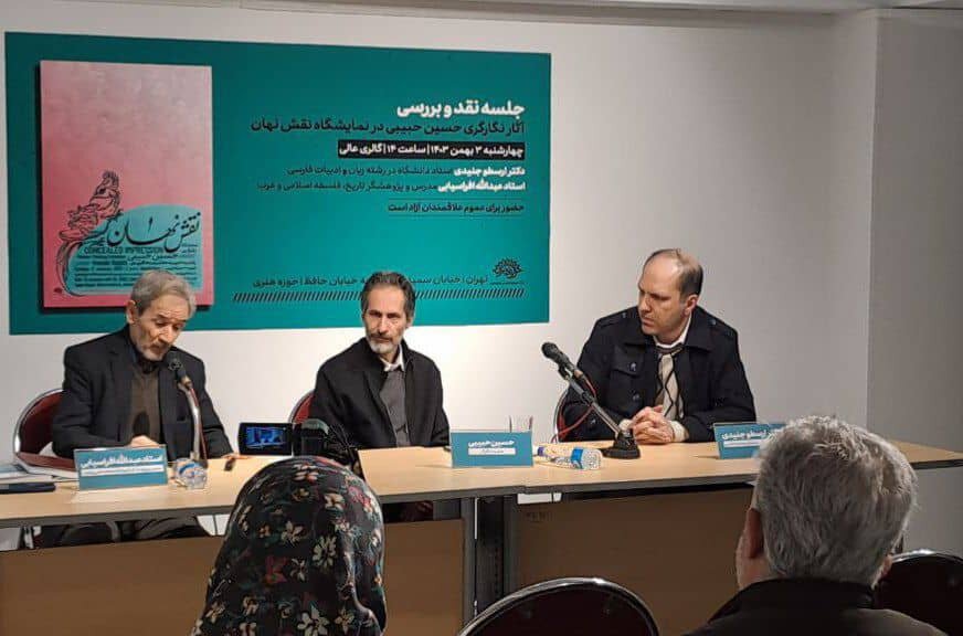به گزارش ایسنا به نقل از روابطعمومی مرکز هنرهای تجسمی حوزه هنری، نشست نقد و بررسی آثار نگارگری «نقش نهان»، با حضور ارسطو جنیدی استاد دانشگاه در رشته زبان و ادبیات فارسی، عبدالله افراسیابی مدرس و پژوهشگر تاریخ و فلسفه، حسین حبیبی هنرمند نگارگر و جمعی از هنرمندان و علاقمندان در نگارخانه عالی حوزه هنری برگزار شد.
