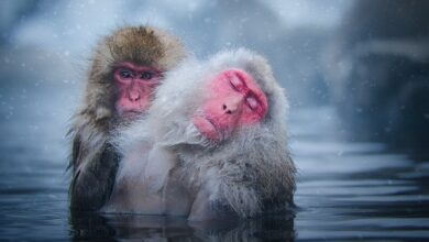 راهحل زیرکانه میمونهای برفی ژاپن برای غلبه بر سرمای کشنده | ویدئو